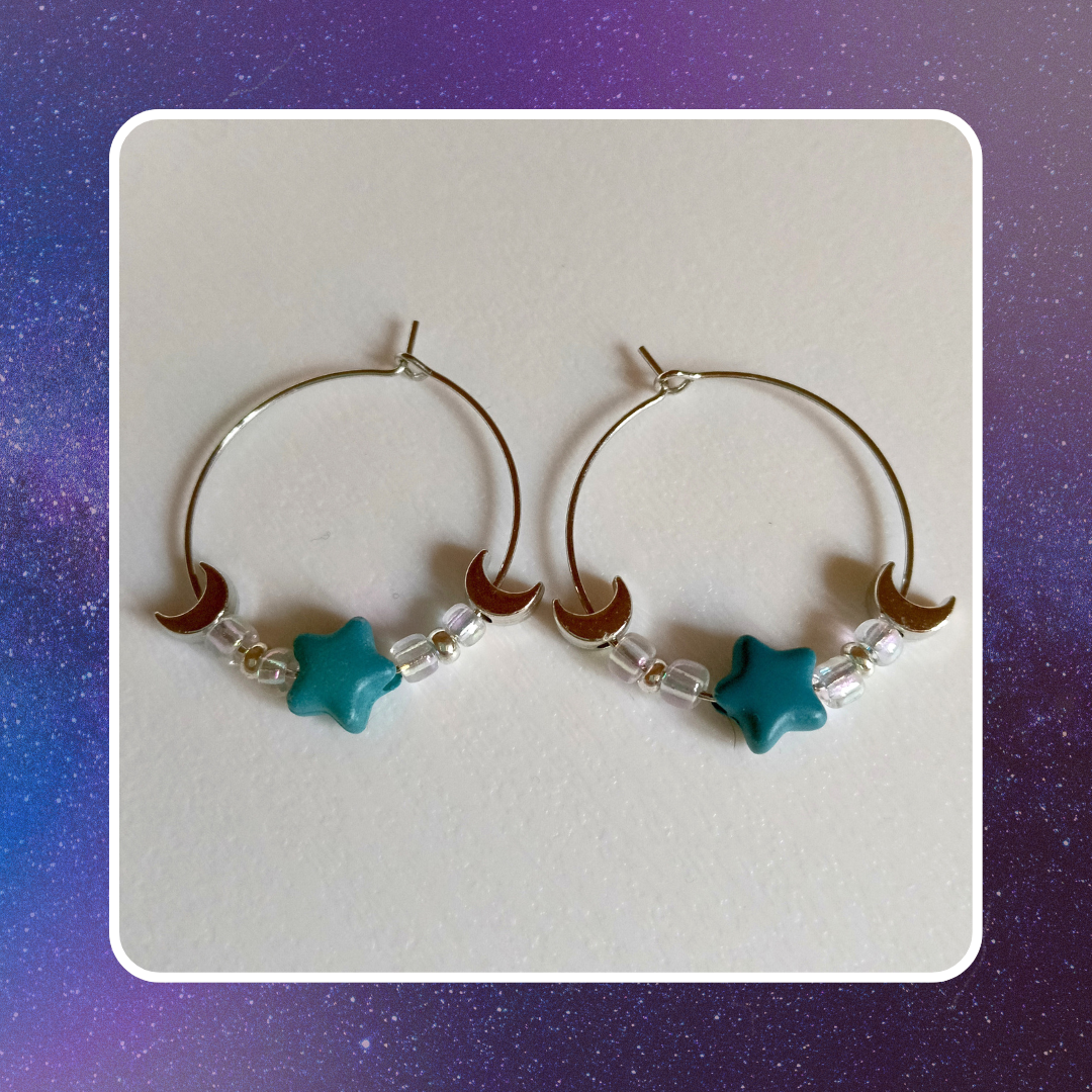 boucles d’oreilles nuit, boucles d’oreilles étoiles, bijoux ciel étoilé, bijoux lune, boucles d’oreilles célestes, idées cadeaux Noël bijoux, bijou cosmique, boucles d’oreilles originales femme, accessoires étoiles, boucles d’oreilles thème nuit