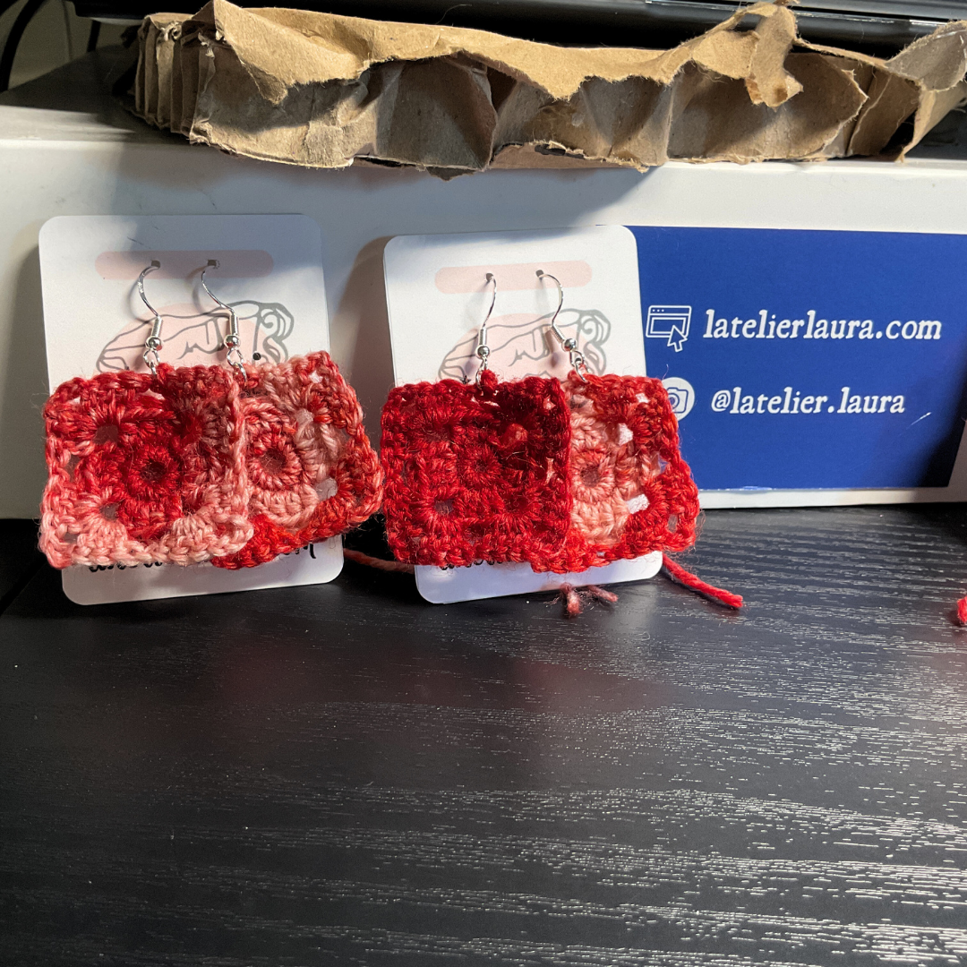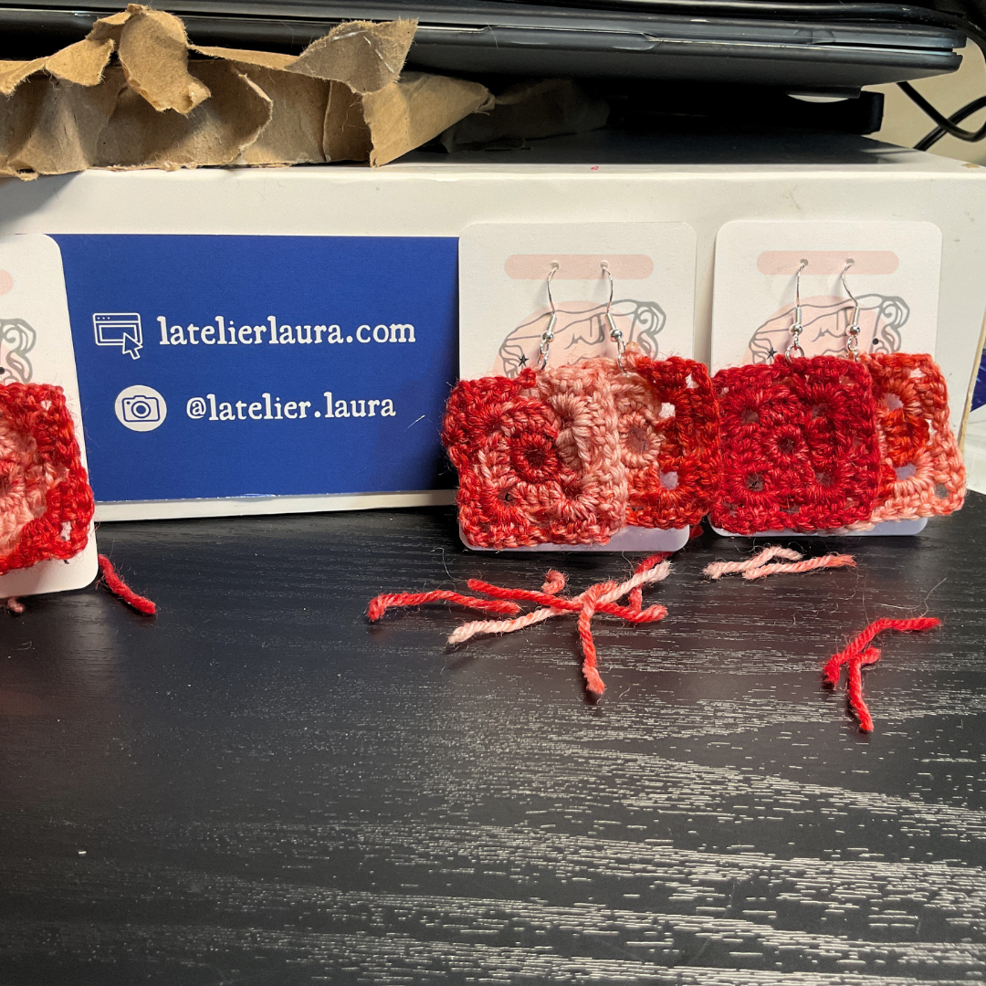 idée cadeau, idée cadeau crochet, accessoire fait main, cadeau original, granny squares, mini granny squares, micro crochet, laine en dégradé, boucles d’oreilles crochet, crochet addict, boucles d’oreilles argent 925, …