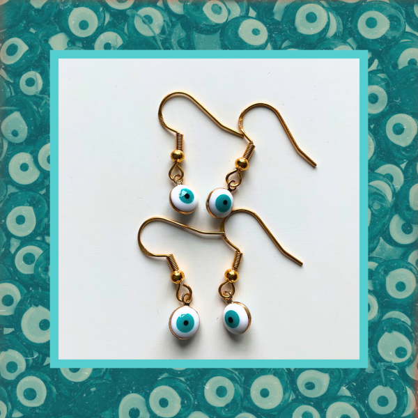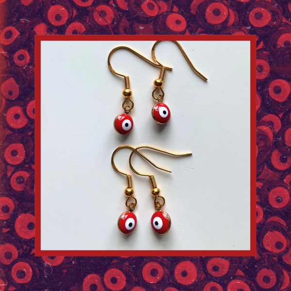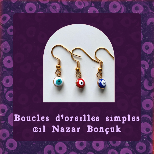 Boucles d’oreilles œil Nazar Bonçuk ; Bijou protection contre le mauvais œil ; Amulette de protection Nazar Bonçuk ; Bijoux fait main amulette ; Boucles d’oreilles porte-bonheur ; Bijou méditerranéen protection ; Boucles d’oreilles or doré ; Bijoux subtils et symboliques ; Amulette Nazar Bonçuk bleu rouge cyan ; Boucles d’oreilles petites breloques mignonnes ; Accessoires symboliques protection ; Bijou de chance fait main ; Cadeau symbolique protection chance ; Bijou porte-bonheur fait main ;