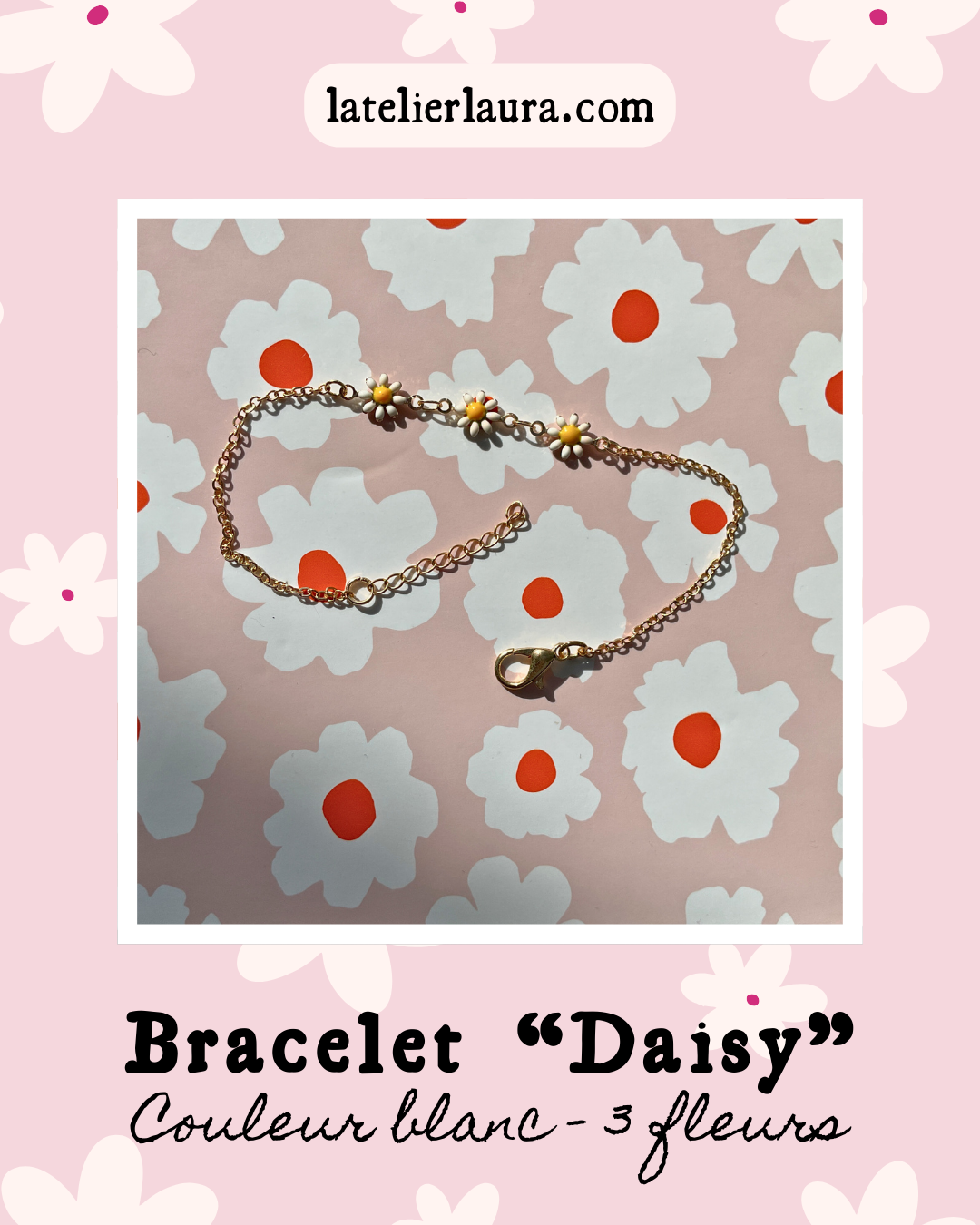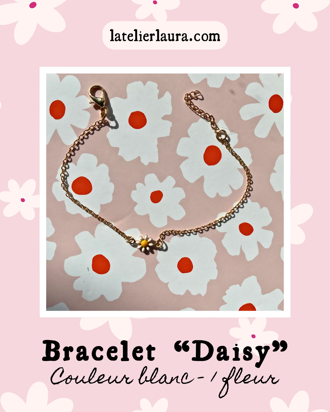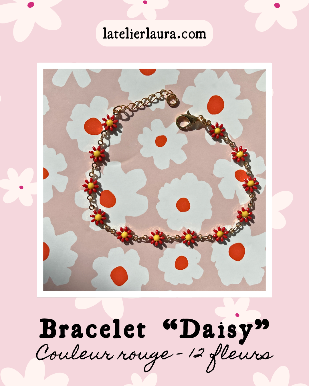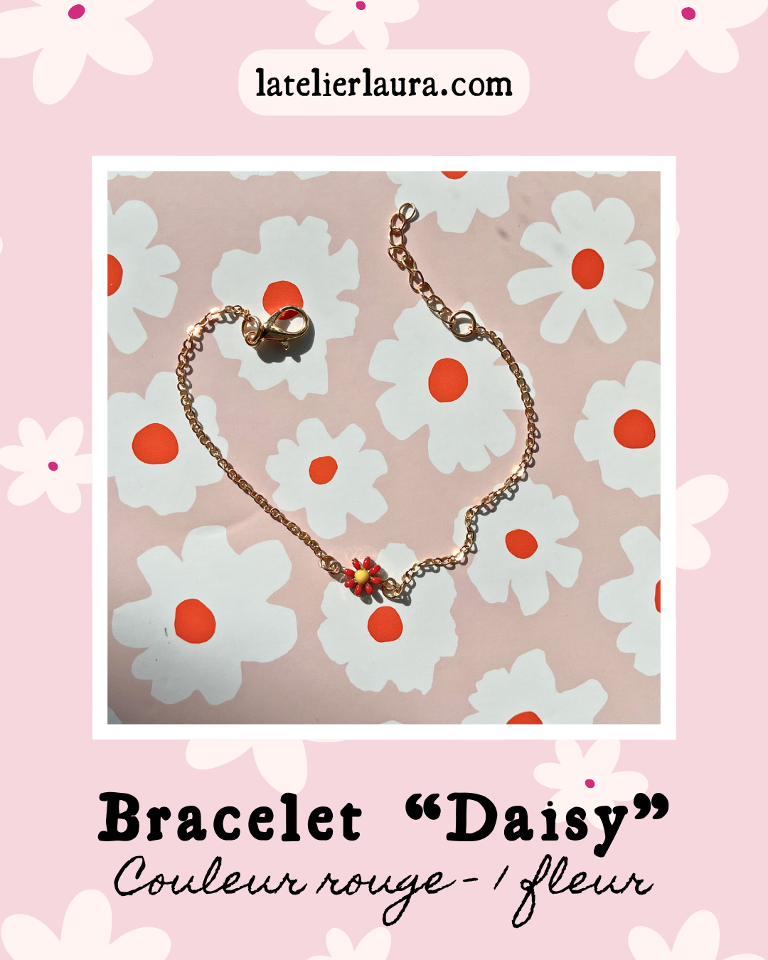 bracelets printemps ; bracelet en chaîne ; bracelets à fleurs ; fleur rouge ; fleur blanche ; fleur rose ; bracelets à offrir ; bracelets minimalistes ; bracelet personnalisable