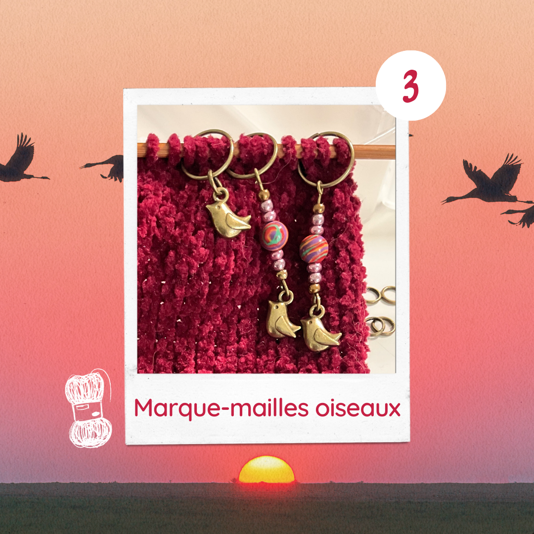 Marque-mailles pour tricot ; Accessoires tricot ; Marque-mailles crochet ; Cadeau pour passionné de tricot ; DIY tricot ; Accessoires créatifs faits main ; Marque-mailles breloques oiseaux