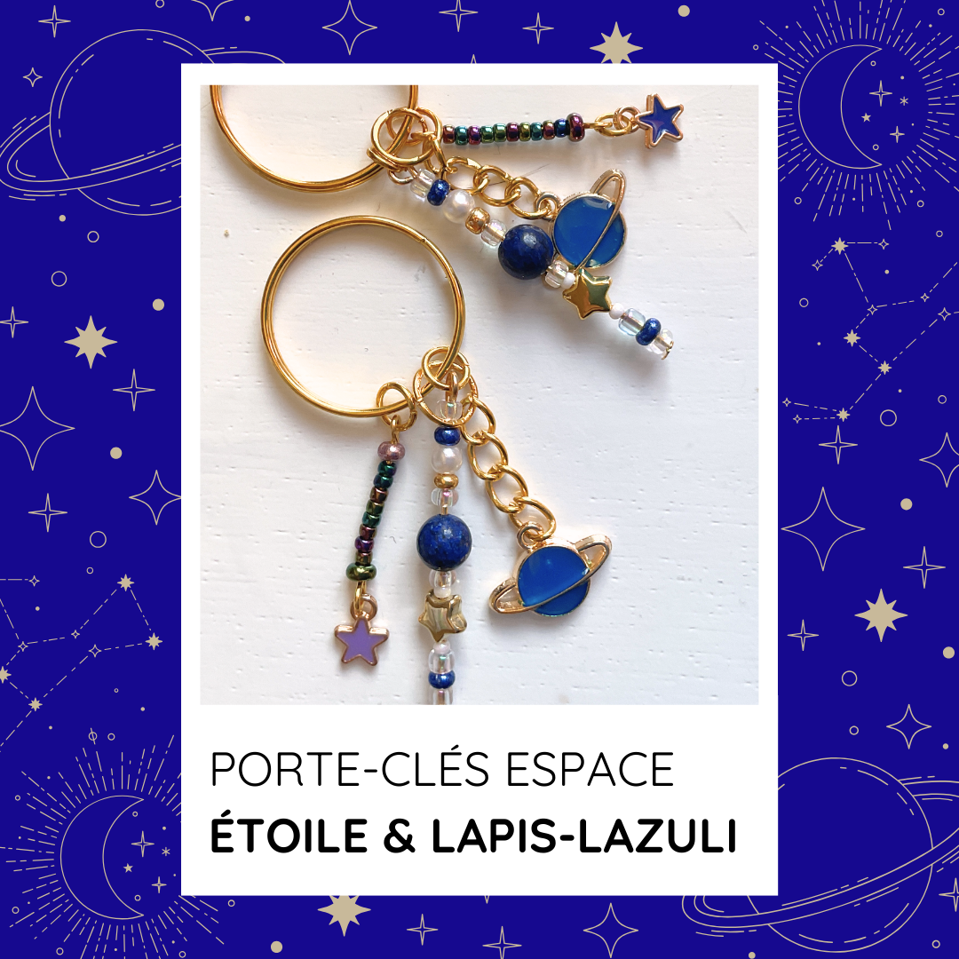 porte-clé ciel étoilé, bijou pratique, accessoire de poche, pierre naturelle lapis-lazuli, accessoire fait main, idée cadeau cosmique