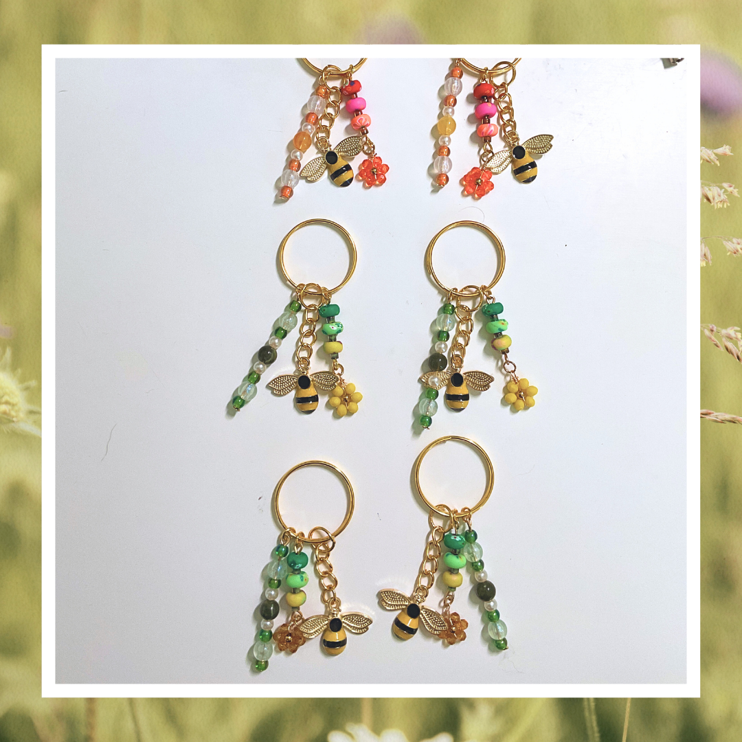 porte-clés nature, bijou artisanal, porte-clés abeille, breloque fleur, accessoires fait main, cadeau original nature, porte-clés en perles peintes